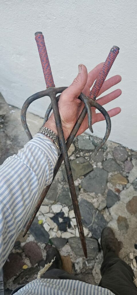 “¿en donde anda tu marido?” la pregunté, dejando mi hija en su taller. “creo que está echando un cigarrito ahí atrás” me contestó y si, atrás de su casa, en un sillón, conectado a sus airpods y con un cigarrito, lo encontré.